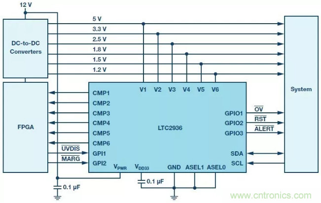 例如ADI公司的LTC2936可以提供六个可编程阈值模拟比较器,用于检测快速事件并将数字状态发送到逻辑。该器件还有三个可编程GPIO引脚,可提供额外的功能。该可编程IC包括EEPROM,后者可在启动时近乎即时地工作;该IC还能通过其I2C/SMBus接口存储故障遥测数据以便进行调试。