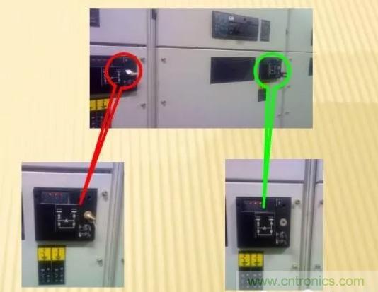 操作顺序(红的“标示”是N电源柜,绿的“标示”是E电源柜,黄的“标示”是出线柜):