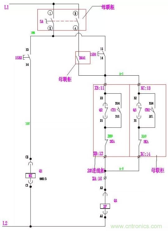 注:本原理图是Q1断路器的控制图,Q2、Q3的控制图与它一样。