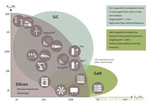 图1:与硅或 SiC 器件相比,GaN HEMT 可实现更高频率开关模式电源。(图片来源:Infineon)