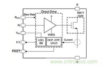 图2:Texas Instruments 的 LMG3411R070 在其驱动器中集成了一个 70 mΩ、600 V 的 eGaN 功率级。(图片来源:Texas Instruments)