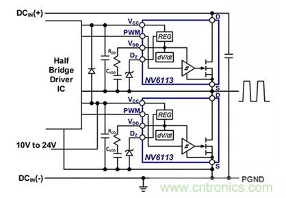 图4:如图所示,Navitas 的 NV6113 可并行部署,用于半桥拓扑结构。(图片来源:Navitas Semiconductor)