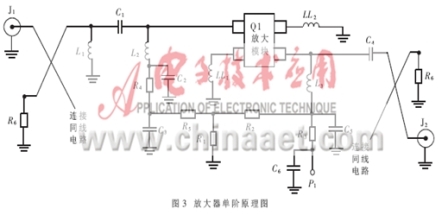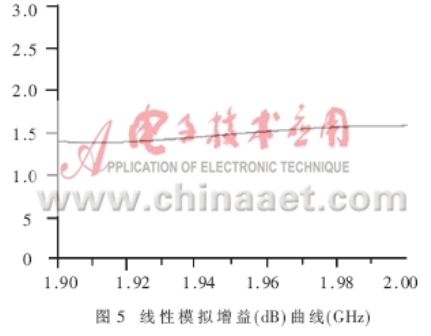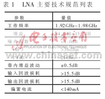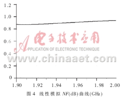 为使图2中的LNA??樵肷凳?。截点和增益达到表1中的各项指标,设计漏极电流Id=60mA?同时,要求单个放大元件在此偏置点的工作性能达到优于表1的规范值。由于E-pHEMT元件ATF-54143在电流Id=60mA下,具有最佳的截点(IP3)和最小噪声系数Fmin;漏源极电压Vds为3V时,具有稍高的增益;偏置是+5V稳定电压,所需单极性+3V电压更具有优势,因此选择其作为放大元件。