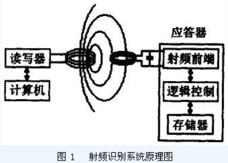通常情况下, RFID 的应用系统主要由读写器和RFID 卡两部分组成的,如图1 所示. 其中,读写器一般作为计算机终端,用来实现对RFID 卡的数据读写和存储,它是由控制单元、高频通讯??楹吞煜咦槌?而RFID 卡则是一种无源的应答器,主要是由一块集成电路( IC) 芯片及其外接天线组成,其中RFID 芯片通常集成有射频前端、逻辑控制、存储器等电路 ,有的甚至将天线一起集成在同一芯片上 .