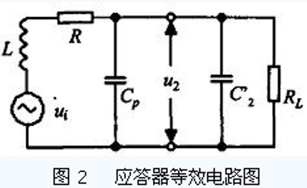 当RFID 的线圈天线进入读写器产生的交变磁场中,RFID 天线与读写器天线之间的相互作用就类似于变压器,两者的线圈相当于变压器的初级线圈和次级线圈. 由RFID 的线圈天线形成的谐振回路如图2所示,它包括RFID 天线的线圈电感L 、寄生电容Cp和并联电容C2′,其谐振频率为: