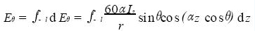 式中Iz 为沿振子臂分布的电流,α为相位常数, r 是振子中点到观察点的距离,θ为振子轴到r 的夹角,l 为单个振子臂的长度. 同样,也可以得到天线的输入阻抗、输入回波损耗S11 、阻抗带宽和天线增益等等特性参数 .