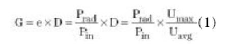 如式1所示,天线增益G被定义为最大辐射强度同平均辐射强度乘以天线效率的比。