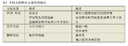 在选择天线时,天线的尺寸、成本以及性能是最重要的考虑因素。对于短距离无线设备而言,三种最常见的天线为PCB天线、芯片天线以及鞭形天线。这三种天线的优缺点如表1所示。