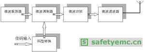 可见,中频调制发射机的构成方案与一般调频的模拟微波发射机相似,只要更换调制、解调单元,就可以利用现有的模拟微波信道传输数字信息。因此,在多波道传输时,这种方案容易实现数字模拟系统的兼容,而在不同容量的数字微波中继设备系列中,更改传输容量只需要更换中频调制单元,微波发送单元可以保持通用。因此,在研制和生产不同容量的设备系列时,这种方案有较好的通用性