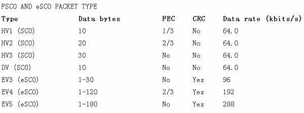 对于功能较简单的蓝牙设备,比如单声道手机耳机,简单的SCO音频信道就可以。除非处于特别环境,所有的SCO音频数据包类型都可以在这样的设备上使用,而把准确选择留给蓝牙芯片的连接管理代码。