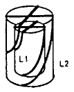 尽管采用较粗的螺旋臂可使四臂螺旋天线输入端的电抗随频率的变化变得较慢,因而能在一定范围内改善频带特性,但这种改进受到很大的限制,且付出的代价是增加了天线的重量和加工难度。为了能真正实现宽带工作,我们以这种天线为基础设计出的八臂螺旋天线如图1所示。这种新型天线由两付形状相同,共轴放置,但臂长不同的四臂螺旋天线组成。我们只对其中的一付螺旋天线馈电,另一付天线上的电流则通过电磁耦合得到。