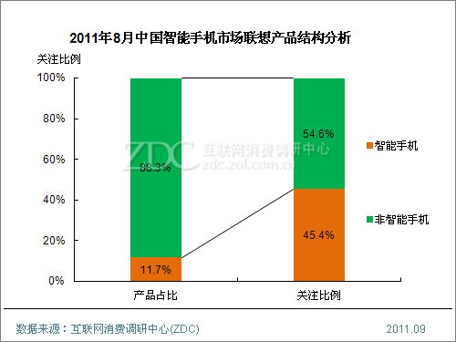 (图)2011年8月中国智能手机市场联想产品结构分析