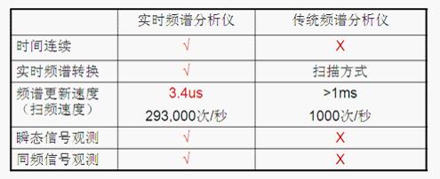 图3: 实时频谱分析仪和传统频谱分析仪的区别。
