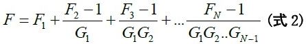 式中,F=总系统噪声系数,Fn=每个子系统的噪声系数,Gn=每个子系统的增益(损耗)。
