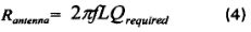 设天线的谐振电阻为Rpor,理想品质因数为Qreqtuired,则: