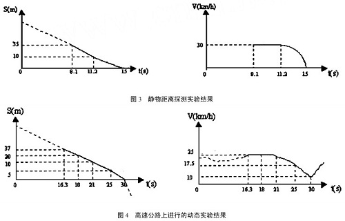 为了评价汽车红外防撞系统的性能,包括探测障碍物距和相对速度的性能,采用静物距离探测和在高速公路上行驶时动态探测两种试验。