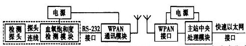 基于WPAN的脉搏血氧饱和度检测仪的系统结构如图1所示。