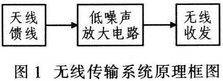 图1为无线传输系统原理框图。接收端的功率放大电路??橛捎谛诺谰哂兴ゼ跆匦裕毒嗬氪涞酱锝邮斩说?a target="_blank" style="text-decoration:none;" >射频信号电平多是μV数量级,因此需放大微弱的射频信号。同时,信道中还存许多干扰信号,即噪声,所以该系统设计应采用低噪声的射频功率放大电路。