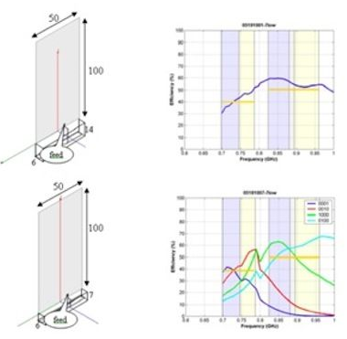 下面这个例子很好地说明了调谐方法在天线体积减小方面带来的好处。这里用3D电磁建模程序分析两种不同的天线配置:一种是宽带设计;另一种是可以在相同频率范围内调谐,但使用了4个调谐状态的窄带设计?! ?br />