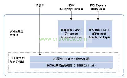 WiGig虽然是最后出现的,但作为非压缩方式的有力候补,其存在不容忽视。WiGig在60GHz频带的物理层及扩展了IEEE802.11的MAC层上,规定了处理HDMI和Display-Port等信号的扩展标准(图4)。MAC层之所以与IEEE802.11标准确保了向后兼容,是因为设想了在平时使用WLAN,只在传输影像等时使用60GHz频带等用途。WiGig Alliance与Wi-Fi Alliance共同制定了认证计划等,WiGig将来还有可能会与WLAN整合。