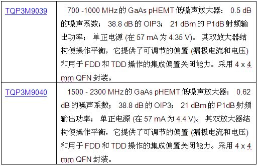 最新TQP3M9039和TQP3M9040目前已投产,可提供样片。