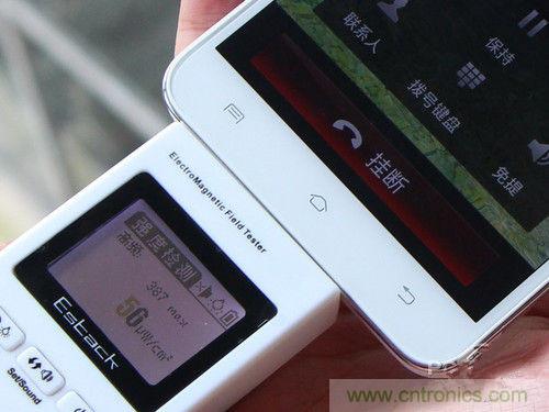 我们也进行了相关的简单测试,采用Estack ES-305A型电子辐射检测仪,第一阶段将手机拨号,使其为通话状态,但尚未接通,此刻来使用辐射测试仪测试手机周围辐射,找到平均辐射值最大的地方。第二阶段用手机拨号,接通五秒后,利用辐射测试仪在手机四周检测,同样是找到平均辐射值最大的地方。