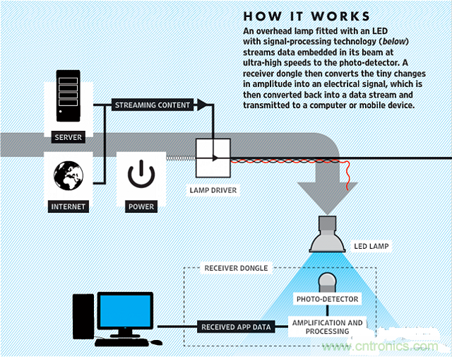 使用这种技术的LED灯泡不会出现视觉效果上的不同——光脉冲编码的信息太微小,加上传输速度之快,肉眼是看不见的。此外,目前尚不清楚这种更快速的数据传输技术是否会增加LED灯和光学探测器的成本。