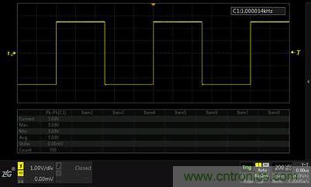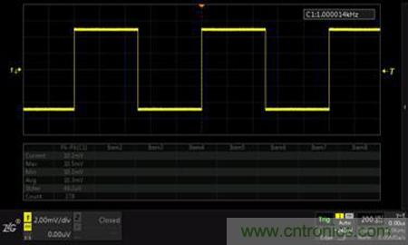 图1 2mV/div档位下测试10mVpp的方波峰峰值误差