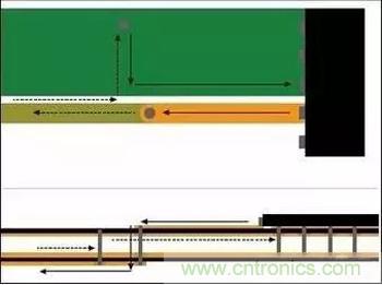 流经所布线路的所有电流都有相等的回流。耦合策略固然很多,不过回流通常流经相邻的接地层或与信号线路并行布置的接地。在参考层继续时,所有耦合都仅限于传输线路,一切都非常正常。不过,如果信号线路从顶层切换至内部或底层时,回流也必须获得路径。