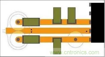 图1就是一个实例。顶层信号线路电流下面紧挨着就是回流。当它转移到底层时,回流就通过附近的通孔。不过,如果附近没有用于回流的通孔时,回流就要通过最近可用的接地通孔。更远的距离会产生电流环路,形成电感器。如果这种不必要的电流路径偏移,碰巧又同另一条线路交叉,那么干扰就会更严重。这种电流环路其实相当于形成了一个天线!