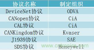 这个规则,定义了CAN报文中帧ID及帧数据的使用方式,如将帧ID定义为需要处理该帧数据的CAN节点地址等。根据应用场合的不同,国际上出现了多种CAN应用层协议,常见的CAN-bus应用层协议如下: