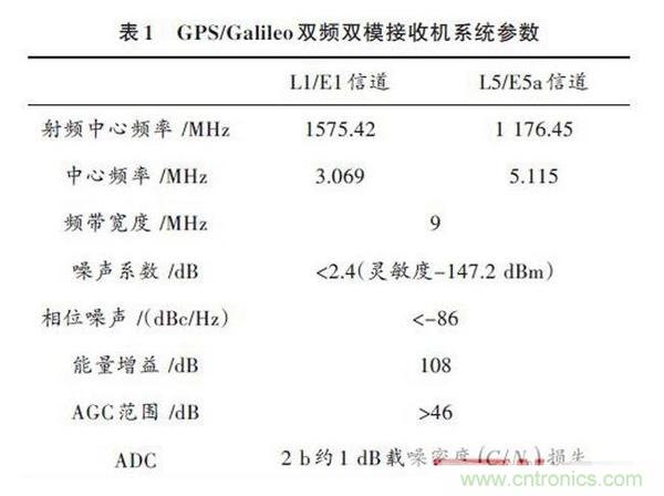 在参考接收机的性能要求的基础上,设计GPS接收机射频前端芯片的各项系统指标见表1.
