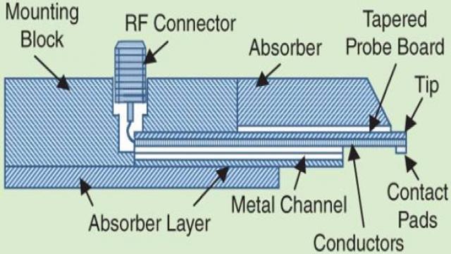 EM场分布图的转换是由处于单个探针组装内的若干个射频过渡措施来维持的。一个传统的射频探针是由下列几个部分组成的: