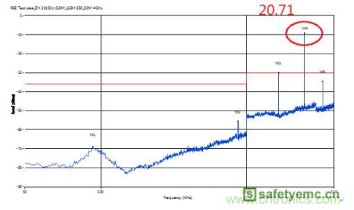 首先,针对三次谐波分析杂散辐射来源是否通过传导传播,通过测试验证此频率下传导杂讯的裕量在9dB以上。接下来的思路转移到了辐射的杂讯上。