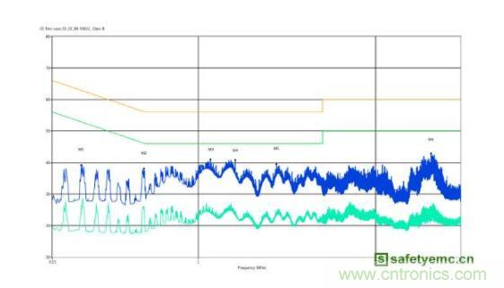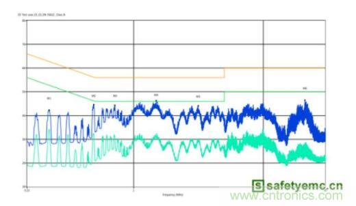 最后我们再进入暗室完成一次全频带范围内的辐射杂散扫描和传导扫描,最终结果请参考图10和图11所示。可以看出辐射杂散结果有明显改善,同时传导辐射也有所改善。