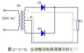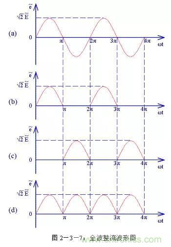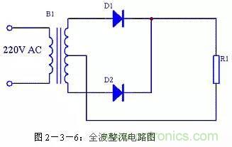 全波整流电路每个整流二极管上流过的电流只是负载电流的一半,比半波整流小一倍。
