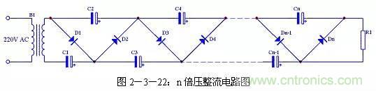 二倍压电路还可以很容易的扩展为n倍压电路,具体电路见图2-3-22。