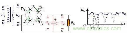 图5带载时桥式整流滤波电路