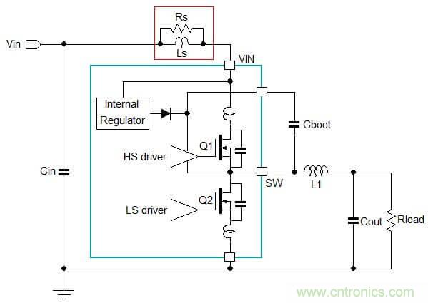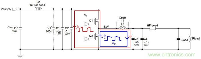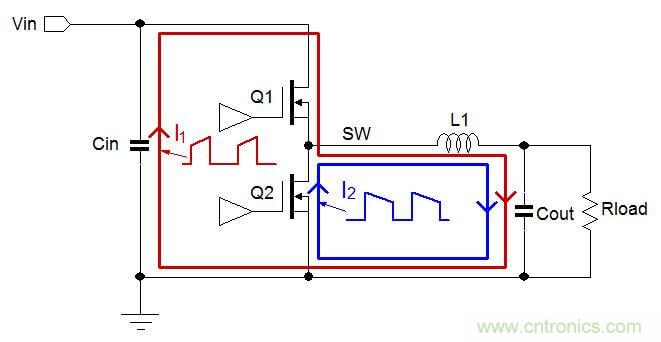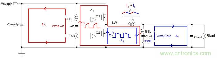 Buck架构DC/DC转换器中存在两个电流发生剧烈变化的主回路 :
