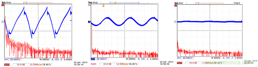 使用输出滤波器(22µF 1206 MLCC + 0603 4A磁珠 BLM18SG700TN1)之后的结果