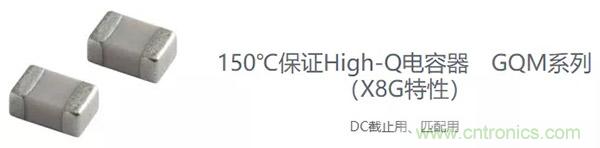 村田制作所的High-Q电容器,除传统125℃保证品(C0G特性),又将150℃保证品(X8G特性)新增到产品阵容。通过降低DC截止用、匹配用电容器周边温度的制约,可提高设计自由度。