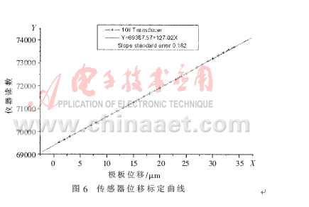 从最后获得的极板位移与比率变压器读数的关系式(6)可知,读数随中心电极的位移呈线性变化。实际完成的系统由于结构的不完善性,在接近量程的两端会出现一定程度的非线性,如果采取等电位屏蔽等措施,可以把输出特性的非线性降低到可以忽略的程度??杉疃降缛菸灰拼衅饔氡嚷什饬糠椒ń岷掀鹄?,设计的测量系统既有很高的分辨能力及较强的抗干扰能力,也能够获得很好的线性响应。