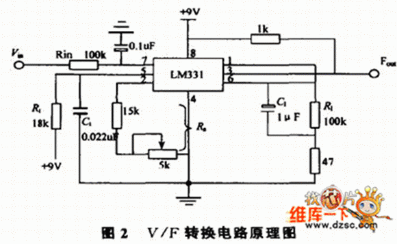 图2电路是将1~5V 的电压转换成200~1000Hz的频率信号的典型电路及参数,要实现将4~20mA或0~5V转换成200~1000Hz的频率信号只要增加一些辅助电路即可实现,其他转换也依此类推。