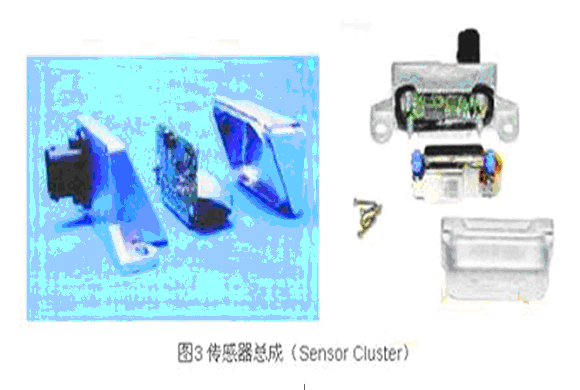 最初的ESP系统中纵向/横向加速度传感器和横摆角速度传感器都是单独实现的,现在基本都使用了传感器总成(Sensor Cluster)的模式,将这3个传感器设计为一体,通过CAN总线与ECU通讯。如图3为SIMENS VDO公司和BEI公司生产的传感器总成。