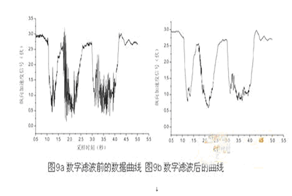调整图8中各个阻容元件的参数,即可设置滤波截止频率和延时大小。汽车运行过程中,在较好路面上行驶时,由于信号较好,延时尽量要小,而在颠簸路面上行驶,则希望滤波效果要好。但是由于硬件滤波的频率特性一经设计完毕,无法实时修改,故需要在软件中设计数字滤波环节。数字滤波常用的有维纳滤波器、卡尔曼滤波器、线性预测器、自适用滤波器等。在这里选用计算量小、实时性能好的一阶低通滤波。