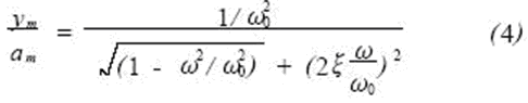 令S=jω,可求得质量块相对运动得位移振幅ym 与被测振动体绝对运动得加速度振幅am 的关系为: