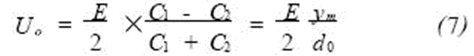 对于气隙型电容传感器,其电容值为C=εS/d ,电容式加速度传感器的两个电容,一个增加,一个减小。因此电容总变化量为: