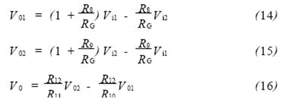 移用放大器从电路结构可知,这是一种同相并联差动放大器,其对称性结构使整个放大器具有很高的共模抑制能力,特别是适用于长距离测量。其数学模型为: