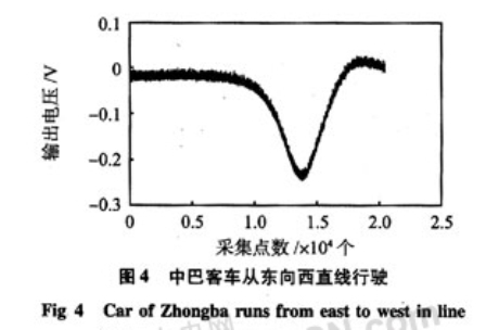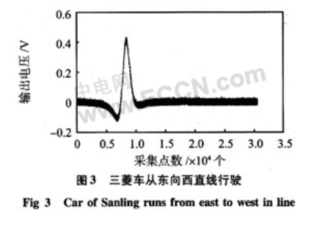 另外,通过比较三菱车不同方向行驶时的曲线可以看出:图中曲线主峰偏向相反,是因为目标移动方向相反,这是由磁阻传感器的特性决定的。