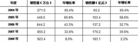 2009年3月5日,中国权威ICT研究与管理咨询机构赛迪顾问股份有限公司(股票代码:HK8235)在“2009中国消费电子市场年会”上发布《2008-2009年中国数码相机市场研究年度报告》显示:2008年,在全球经济不景气的环境下,很多数码产品的市场需求受到了较大的挑战。根据赛迪顾问统计数据显示,2008年中国数码相机市场销售量达到923.4万台,同比增长8.0%,销售额达到183.1亿元,同比增长2.2%。